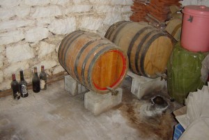 The pressing must have been done by foot, and the spout ran out above the steps, where a bucket would have been placed to collect it. In the good times there were there big barrels in the cellar; this year’s wine, last year’s, and the last good year’s. The plugs on the top of the barrels where the wine was poured in were sealed with limestone.