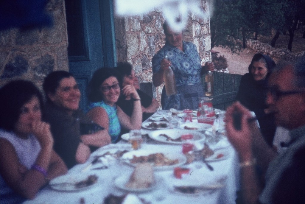 On being asked directions to our house she would squeeze her ample body, plaid blue dress with a black scarf as a belt and her tight bun of grey hair neatly tied, smelling of garlic and goats, into the usually small Fiat rental car. Sometimes the guest’s wife had to get in the back, knees up against her ears while Caterina easily spoke nonstop in Greek to the visitor, irrespective of whether they understood her.