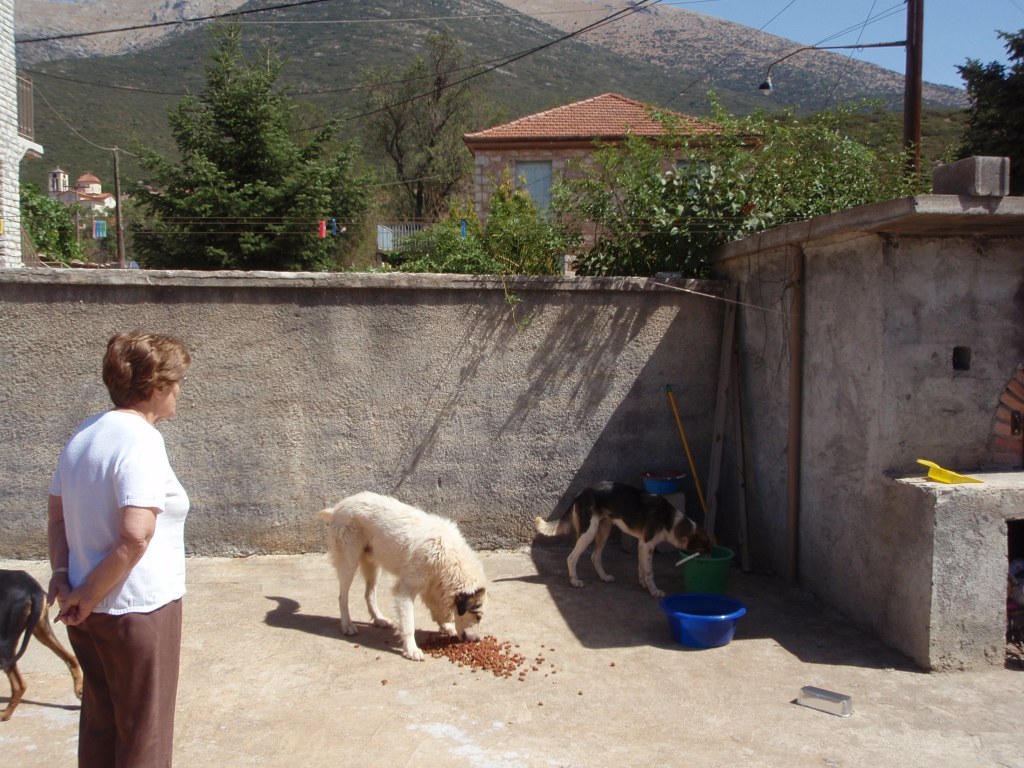 As the years went by my mother started buying dog cubes at the supermarket in Tripolis. There were not always supermarkets there, it is a recent phenomenon. And dog cubes arrived even later. About that time my father built the garage with a separate gate to a small vegetable garden, and my mother started feeding her dogs regularly in that space. She was like a Mother Theresa for the dogs.