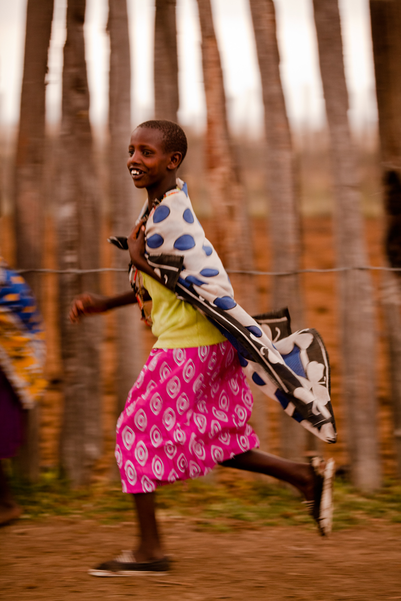The adult women all greeted us with a handshake. The children all lined up, inclined their heads and waiting for a greeting which left me feeling like the Pope blessing the masses: each one had to be touched on the head in greeting. It was quite moving. The men were out, some working at lodges and some just chatting. The older boys were out with the cattle. As we looked around we saw a herd of thousands of wildebeest moving south on the horizon, a reminder of the reason I was in the Mara.