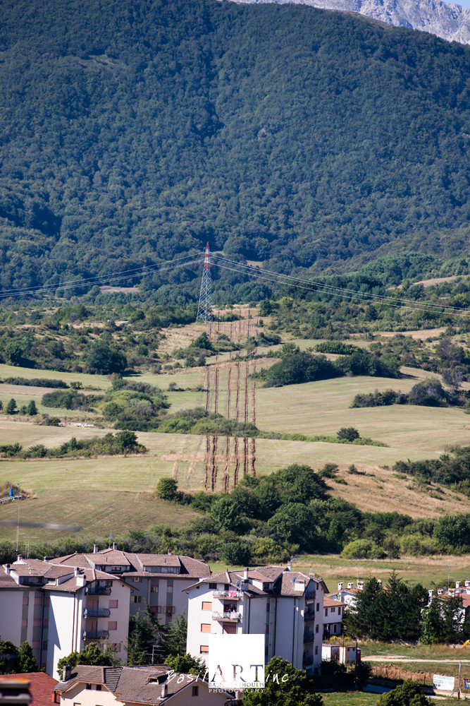 The church of the Good Virgin, “Santa Maria del Neve”, Our Lady of the Snows, crests the hill on which Rocca di Mezzo lies at 1350 meters above sea level. It has been closed since the great earthquake of 2009, but is under repair. The medieval bell tower stands south of the church, facing the long crest of the Sirente Mountain. Before tourism overtook agriculture as the greater source of income for the village, a candle would be placed on a wooden tripod near the bell tower as the central point to aim for while ploughing at night. Even as late as the fifties they used only candles to align their furrows and cows to pull the wooden frame holding the man-made steel plough blade. It goes without saying that in those days there were only men doing the ploughing in October after harvest. In some ways the ploughing was easier then as the fields had been worked for wheat and the soil was soft. Needless to say there was food and wine consumed, much as there is today.