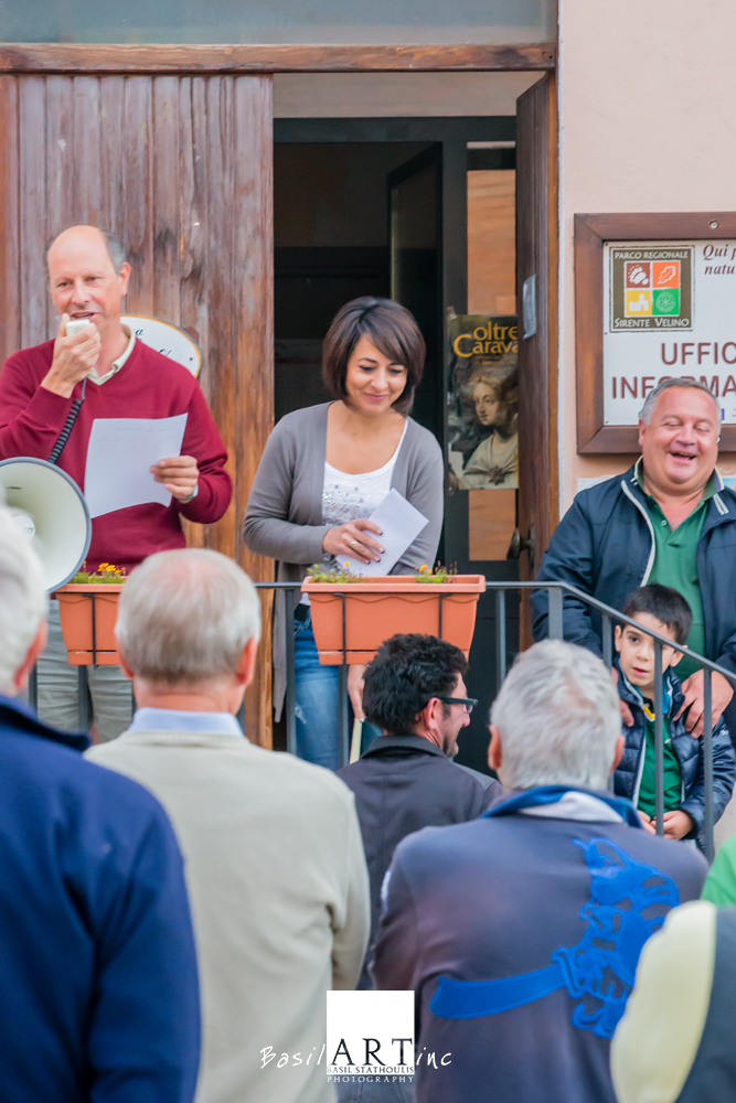 The prize giving was held in the courtyard in front of the oratorio at 7 p.m. that evening. A small tired crowd gathered. The municipal council members stood on the steps leading to the “Proloco”, the municipal offices. The councilors made a speech about the importance of maintaining the tradition, and how important it was not to use modern aids like cellular phones and lasers. No doubt satellite navigation can help too. Even the new powerful light concentrating LED lens torches make a huge difference. Don Vincenzo offered a prayer to the Good Lady and then the runners up were announced. The team that won had only six members. Incredible. And they were indeed the second from the Rocca di Cambio. No political decisions this time! With the late night behind us and a long baptism lunch just over nobody stayed to celebrate. The winners received a certificate and the floating trophy.