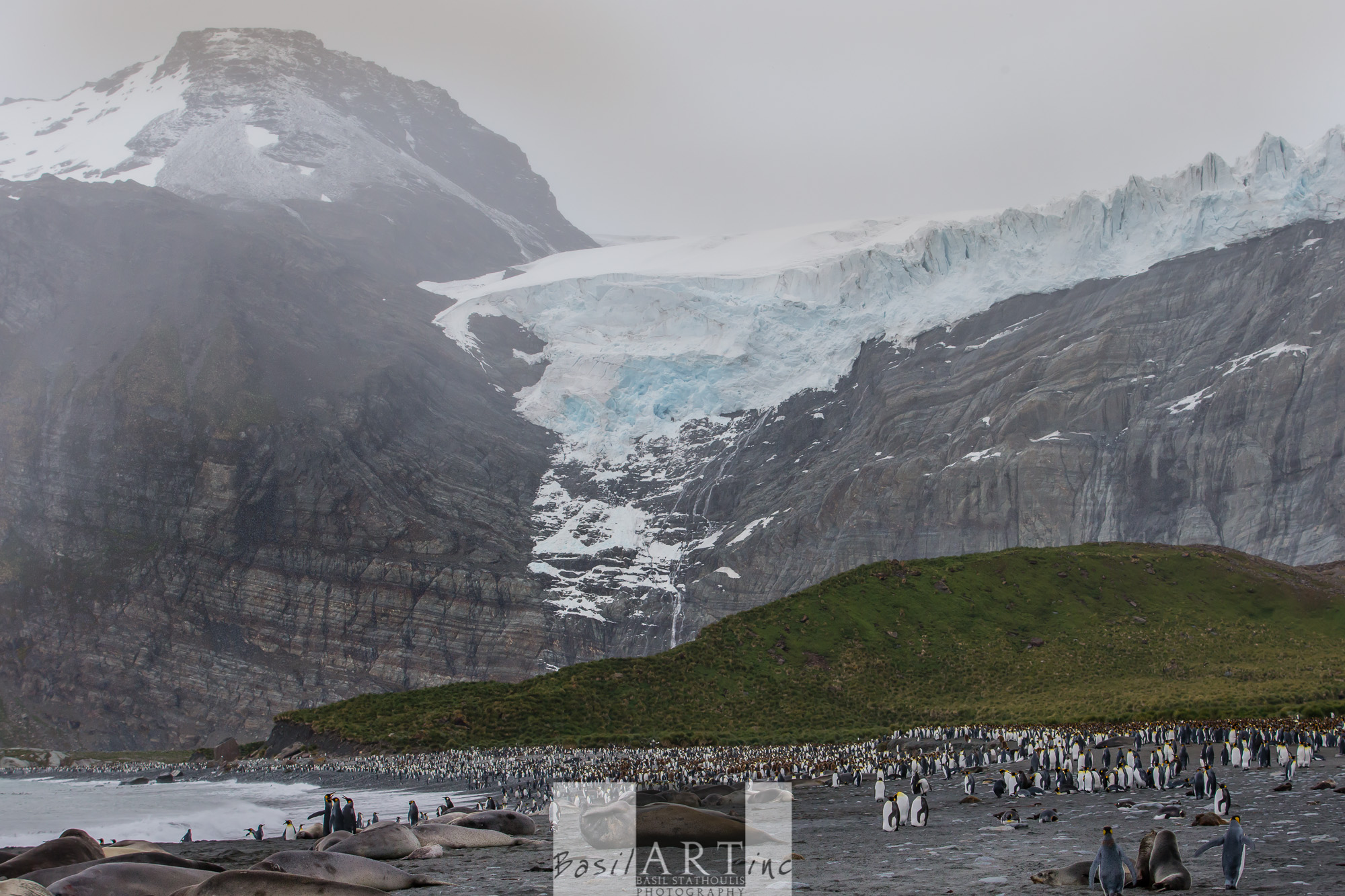Simon Boyes, the ornithologist on board, led us through the giant Elephant Seals that were jousting to secure their harem. They can weight up to 3 tons and raise their necks by extending their backs to face the competition. They are a lot less graceful and if you stand 5 meters away (the rule of wildlife viewing in the Antarctic and Sub-Antarctic region) then invariably some penguins walk up behind you and start pecking at any loose straps. There are 400 000 Elephant Seals on South Georgia, making up 75% of the global population. The scientific name is Mirounga leonina
