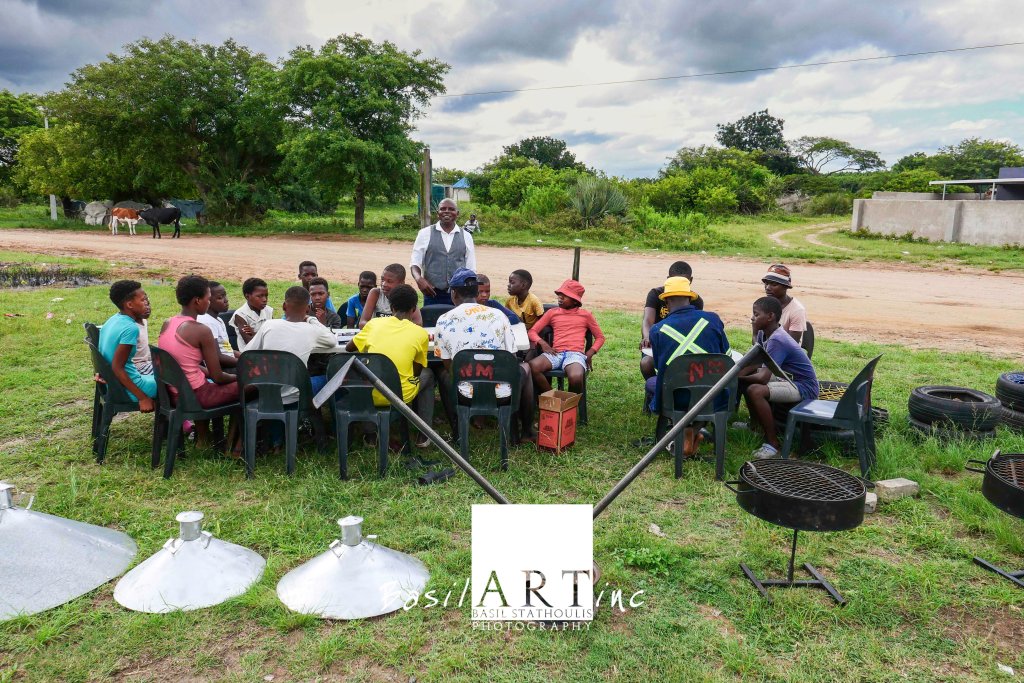 He had hired chairs for the to sit on and play. The winner of each set was given R10 as a prize. All the children received a small packet of potato crisps to sustain them. At the end of the games he challenged the winner to a game, wrapping his King in a shroud of the pink of a R50 note with a thread of green grass.