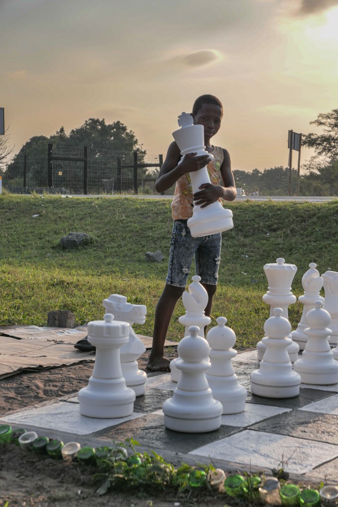 Two weeks ago on a  Saturday morning before the national elections in South Africa, the air buzzed with excitement as children prepared for a chess tournament. A young man, adorned with bravado and scarification marks from a recent visit to the sangoma, arrived proclaiming his invincibility. Mxolisi, the eleven-year-old Hlulabantu Chess Club champion, took on the challenge. Despite being off his game recently, Mxolisi faced the challenger but ultimately lost. Lucky, the club’s founder, acknowledged the victor’s strength with humility, “Indeed, your magic was stronger than the power of the minds that learn chess with me.”